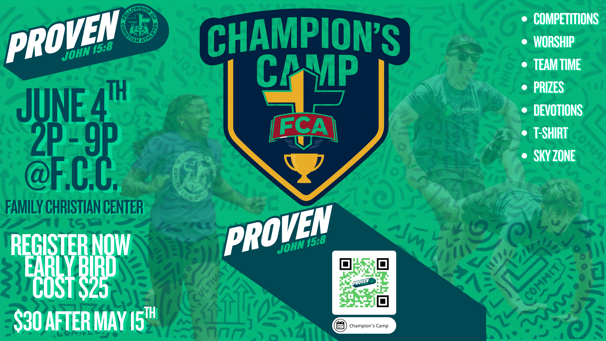 We’re all trying to prove something: our spot on the team; being captain material; being accepted by our peers; earning success and accolades; even love. But we don’t have to keep striving to prove our worth; God has proven everything for us through His Son Jesus Christ. Discover a love and hope that doesn't depend on what you do, but on what Jesus has already done for you! Join us at Camp this summer and learn more about this year's FCA annual theme!